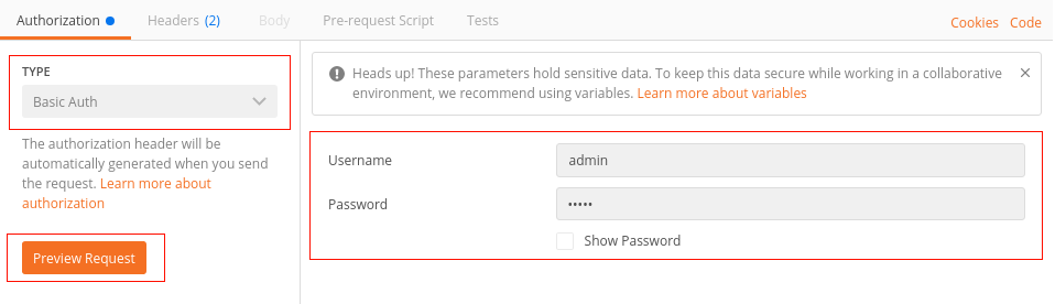 in the drop-down menu the term Basic Auth as the authentication method, and