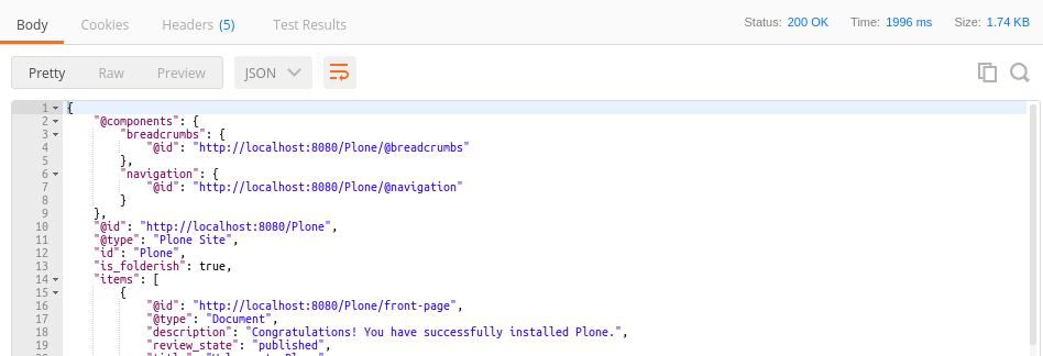 You can now explore the whole structure of your application easily via the API using GET requests.